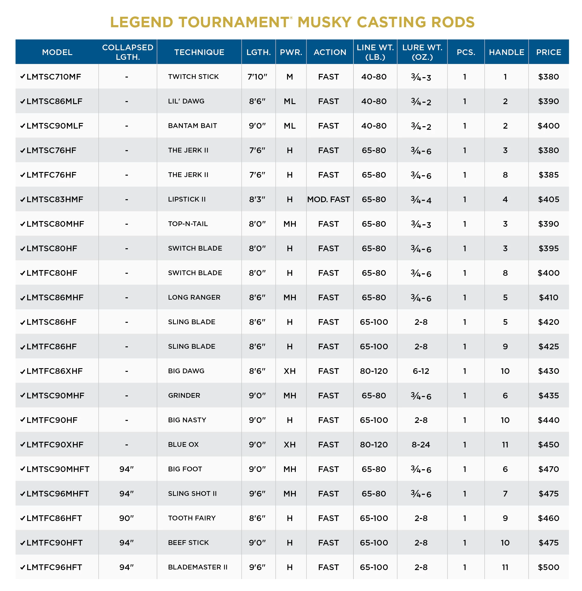 21 technique-specific models feature our new exclusive GRASP reel seat, this totally reimagined Legend Tournament Musky Series is St. Croix’s most advanced and comprehensive musky series ever.Â