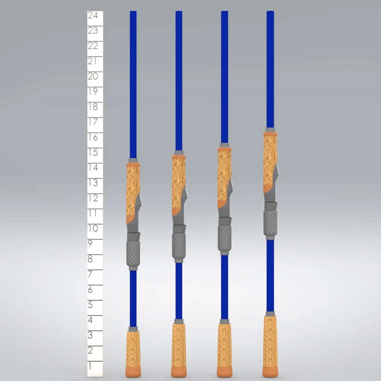 - Split-grip, super-grade cork handles customized per model.